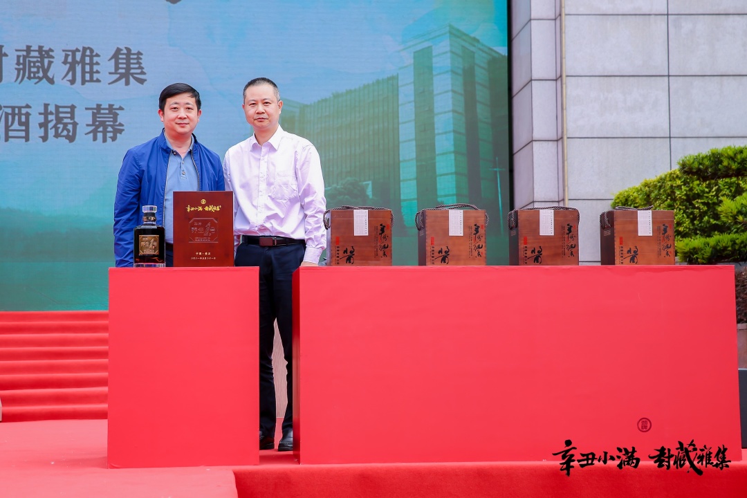 活動中副總裁李暉、曾品堂創始人曾宇先生一起為勁牌養生1號·2021封藏紀念版揭幕。