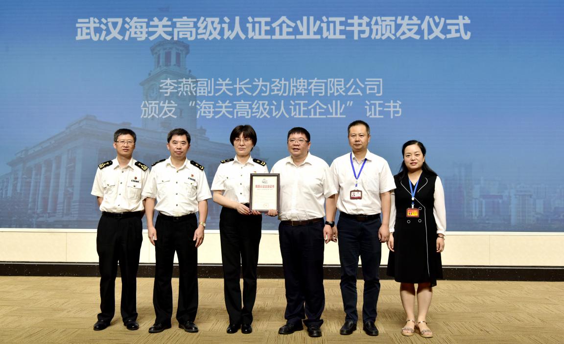 9月2日,武漢海關副關長李燕在黃石海關關長馬洪波等領導的陪同下,蒞臨勁牌調研指導工作,并為公司頒發“海關高級認證企業”證書。勁牌公司總裁王楠波、副總裁李暉予以了熱情接待。